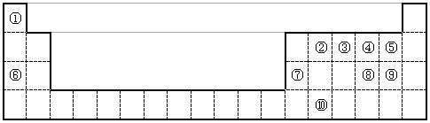 下表為元素周期表的一部分,請(qǐng)參照①~⑩在表中的位置,用化學(xué)用語(yǔ)回答下列問(wèn)題:![]()