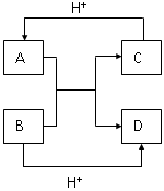 (8分)已知A、B、C、D是中學(xué)化學(xué)中常見的四種不同微粒,它們之間存在如圖所示的轉(zhuǎn)化關(guān)系.![]()