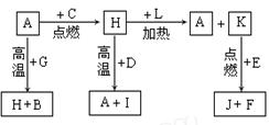 量最多的金屬元素;D元素和E元素在周期表中相鄰。G、H、I、J、K、L是常見化合物,其中G在常溫下是無色液體,H是黑色固體。以上物質(zhì)相互間的