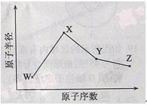 W、X、Y、Z是四種常見的短周期元素,其原子半徑隨原子序數(shù)變化如下圖所示。已知W的一種核素的質(zhì)量數(shù)為18,中子數(shù)為10;X和Ne原子的核外電子數(shù)相差1;Y的單質(zhì)是一種常見的半導(dǎo)體材料;Z的電負(fù)性在同周期主族元素中最大。![]()