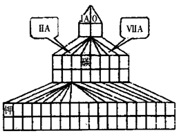 ⑴在右圖塔式周期表相應(yīng)位置標(biāo)出A、B、C、D 四種元素的元素符號(hào)。同時(shí)在圖中將過(guò)渡元素涂黑。![]()