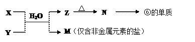(14分)X、Y、Z、W是周期表中原子序數(shù)依次增大的前20號元素。X、Y同周期。Y、Z同主族,Zn-與Wn+離子的電子層結(jié)構(gòu)相同。由這四種元素形成的單質(zhì)、化合物有如下圖轉(zhuǎn)化關(guān)系。已知:常溫下A為液體,B、C、E、G為氣態(tài)化合物,且A、C、G均為直線型分子;D是由元素W、Y形成的常見化合物。![]()