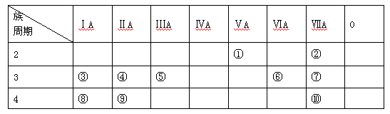 (10分)下表是元素周期表的一部分,回答下列有關(guān)問(wèn)題:![]()