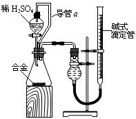 ②實(shí)驗(yàn)中準(zhǔn)確測(cè)得4個(gè)數(shù)據(jù):實(shí)驗(yàn)前該合金的質(zhì)量m1 g,實(shí)驗(yàn)后殘留固體的質(zhì)量m2 g,實(shí)驗(yàn)前后堿式滴定管中液面讀數(shù)分別為V1 mL、V2 mL;則通常狀況時(shí)氣體摩爾體積Vm=____________L·moL-1。