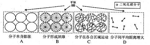 人們常用干冰營造云霧繚繞的舞臺效果,這是因?yàn)楦杀谑覝叵潞苋菀字苯幼兂蓺怏w。在此過程中體積可以增大很多培,原因是( )![]()