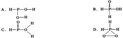 中的三個(gè)氫原子都可以跟重水分子(D2O)中的D原子發(fā)生氫交換。又知次磷酸(H3PO2)也可跟D2O進(jìn)行氫交換,但次磷酸鈉(NaH2PO2)卻不再能跟D2O發(fā)生氫交換。由此可推斷出H3PO2的分子結(jié)構(gòu)是![]()