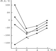 下圖中每條折線表示周期表ⅣA~ⅦA中的某一族元素氫化物的沸點(diǎn)變化,每個(gè)小黑點(diǎn)代表一種氫化物,其中a點(diǎn)代表的是![]()