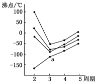 下圖中每條折線表示周期表ⅣA~ⅦA中的某一族元素氫化物的沸點變化,每個小黑點代表一種氫化物,其中a點代表的是( )