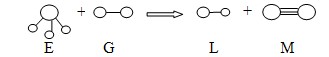 已知三角錐形分子E和直線形分子G反應(yīng),生成兩種直線形分子L和M(組成E、G、L、M分子的元素原子序數(shù)均小于10)如下圖,則下列判斷錯(cuò)誤的是![]()
