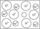 (附加題2)(2分)天然的和絕大部分人工制備的晶體都存在各種缺陷,例如在某種NiO晶體中就存在如圖所示的缺陷:一個(gè)Ni2+空缺,另有兩個(gè)Ni2+被兩個(gè)Ni3+所取代。其結(jié)果晶體仍呈電中性,但化合物中Ni和O的比值卻發(fā)生了變化。其氧化鎳樣品組成為Ni0.97O,試計(jì)算該晶體中Ni2+與Ni3+的離子數(shù)之比。![]()