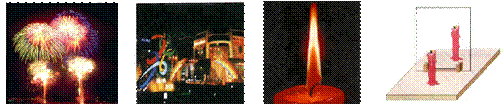 A.燃燒焰火 B霓虹燈廣告 C 蠟燭燃燒 D平面鏡成像
