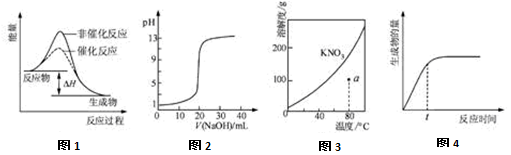 | A.圖1表示某吸熱反應(yīng)分別在有、無(wú)催化劑的情況下反應(yīng)過(guò)程中的能量變化 |