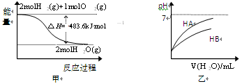 D.乙圖中起始時(shí)HA的物質(zhì)的量濃度大于HB