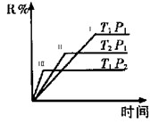 R(g)+2L,在不同條件下R的百分含量R%的變化情況如下圖,下列敘述正確的是![]()