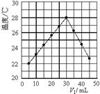 將V1 mL 1.0 mol/L HCl溶液和V2 mL未知濃度的NaOH溶液混合均勻后測(cè)量并記錄溶液溫度,實(shí)驗(yàn)結(jié)果如圖所示(實(shí)驗(yàn)中始終保持V1+V2=50 mL)。下列敘述正確的是