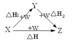 X、Y、Z、W有如右圖所示的轉(zhuǎn)化關(guān)系,已知焓變:ΔH=ΔH1+ΔH2,則X、Y不可能是( ) ![]()