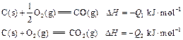 ①C(s)+O2(g)===CO2(g); △H1 C(s)+1/2O2(g)===CO(g); △H2