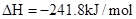 ②H2(g) +1/2O2(g)=H2O(g) ΔH=--241.8 kJ·mol-1