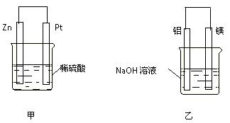 在如圖甲、乙兩裝置中,甲中負(fù)極電極反應(yīng)式為_____________________,