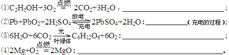 (8分)下列是用化學方程式表示的化學變化,請在每小題后的橫線上注明能量的轉(zhuǎn)化形式![]()