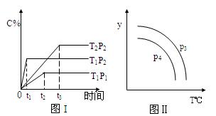 xC(g),有圖I(T表示溫度,P表示壓強(qiáng),C%表示C的體積分?jǐn)?shù))所示的反應(yīng)曲線,試判斷對圖II的說法中正確的是![]()