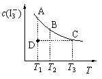 I3-(aq)。某I2、KI混合溶液中,I3-的物質(zhì)的量濃度c(I3-)與溫度T的關(guān)系如圖所示(曲線上任何一點(diǎn)都表示平衡狀態(tài))。下列說法正確的是![]()