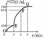 用純凈的CaCO3與100mL稀鹽酸反應(yīng)制取CO2,實驗過程記錄如圖所示(CO2的體積已折算為標(biāo)準(zhǔn)狀況)。下列分析正確的是( ) ![]()