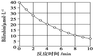 化合物Bilirubin在一定波長(zhǎng)的光照射下發(fā)生分解反應(yīng),反應(yīng)物濃度隨反應(yīng)時(shí)間變化如右圖所示,計(jì)算反應(yīng)4~8 min間的平均反應(yīng)速率和推測(cè)反應(yīng)16 min時(shí)反應(yīng)物的濃度,結(jié)果應(yīng)是( )![]()