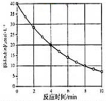 化合物Bilirubin在一定波長(zhǎng)的光照射下發(fā)生分解反應(yīng),反應(yīng)物濃度隨反應(yīng)時(shí)間變化如右圖所示,計(jì)算反應(yīng)4~8 min間的平均反應(yīng)速率和推測(cè)反應(yīng)16 min反應(yīng)物的濃度,結(jié)果應(yīng)是![]()