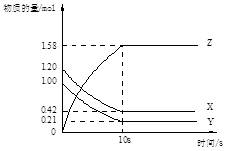 | A.反應(yīng)開始到10s,用Z表示的反應(yīng)速率為0.158mol/(Ls) |