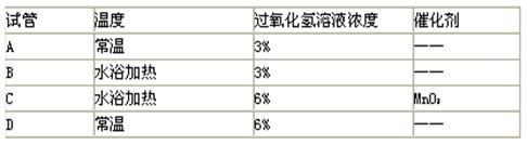 下列四個(gè)試管中,過(guò)氧化氫分解產(chǎn)生氧氣的反應(yīng)速率最慢的是![]()