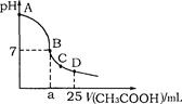 B.在B點,a>12.5,且有c(Na+)=c(CH3COO-) >c(OH-)=c(H+)