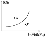 pC(g) ΔH<0,在一定溫度下,平衡時B的體積分?jǐn)?shù)(B%)與壓強(qiáng)變化的關(guān)系如圖所示,下列敘述中一定正確的是( )![]()