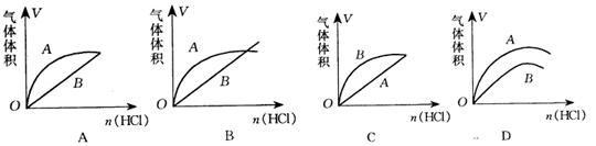 進行如下實驗,在A錐形瓶中放入10g塊狀CaCO3,在B錐形瓶中放入5g粉末狀CaCO3,分別加入50mL2mol/L鹽酸。下圖中能正確表示實驗結(jié)果的是( )![]()