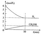 測(cè)得H2和CH3OH(g)的濃度隨時(shí)間變化如右圖所示。下列說(shuō)法不正確的是 ( )![]()