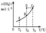 CO2(g)+H2(g)。CO2(g)的平衡物質(zhì)的量濃度c(CO2)與溫度T的關(guān)系如圖所示。下列說法錯誤的是( )![]()