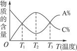 cC中物質(zhì)的含量A%和C%隨溫度的變化曲線如下圖所示,下列說法正確的是( )![]()