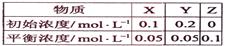 在25℃時,密閉容器中X、Y、Z三種氣體的初始濃度和平衡濃度如下表:![]()