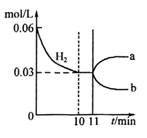 | D.從11min起其它條件不變,壓縮容器的體積,則c(H2 )的變化曲線為b |