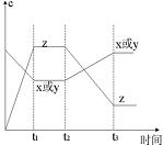 2Z(g);正反應放熱。從反應開始經(jīng)過t1后達到平衡狀態(tài),t2時由于條件改變,平衡受到破壞,在t3時又達到平衡,據(jù)下圖回答:從t2→t3的曲線變化是由哪種條件引起的( )![]()