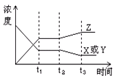 2Z(g) ΔH< 0反應(yīng)變化過程中物質(zhì)的濃度與反應(yīng)的時(shí)間變化關(guān)系.圖中t2→t3秒間的曲線變化是由于下列哪種條件的改變所引起的![]()