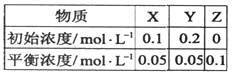 在25℃時,密閉容器中X、Y、Z三種氣體的初始濃度和平衡濃度如下表:下列說法錯誤的是![]()