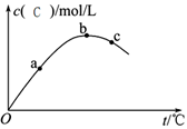 2C(g),測得C濃度與反應(yīng)溫度關(guān)系如圖。下列說法正確的是![]()