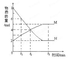在一定溫度下,容器內某一反應中M、N的物質的量隨反應時間變化的曲線如圖,下列表述中錯誤的是( )![]()