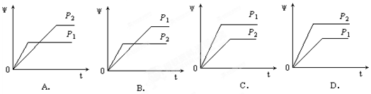 2Y(g) + Z(g)中,生成物Z在反應(yīng)混合物中的體積分?jǐn)?shù)(ψ)與反應(yīng)時(shí)間(t)的關(guān)系有以下圖示,正確的是![]()
