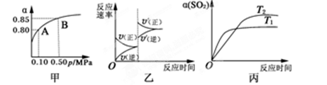| D.壓強(qiáng)為0.50 MPa時(shí)不同溫度下SO2轉(zhuǎn)化率與溫度關(guān)系如丙圖,則T2>T1 |
