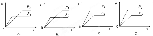 在反應(yīng)混合物中的體積分?jǐn)?shù)(ψ)與反應(yīng)時(shí)間(t)的關(guān)系有以下圖示,正確的是![]()