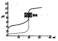 | B.用0.1mol/LNaOH溶液分別滴定相同物質(zhì)的量濃度和相同體積的鹽酸和醋酸,其中實(shí)線表示的是滴定鹽酸的曲線 |