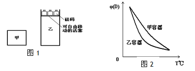 C(g)+3D(g);ΔH<0,F(xiàn)將2molA和2molB充入體積為V的甲容器,將2molC和6molD充入乙容器并使乙容器在反應(yīng)開始前的體積為2V(如圖1)。![]()