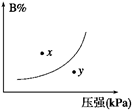 pC(g) ΔH<0,在一定溫度下,平衡時B的體積分?jǐn)?shù)(B%)與壓強(qiáng)變化的關(guān)系如圖所示,下列敘述中一定正確的是( )![]()